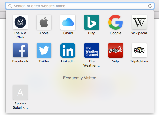 - The Smart Search field: Click the Smart Search field, and a window of bookmarks in your Favorites folder will appear below it. Click any of the icons to visit that website.