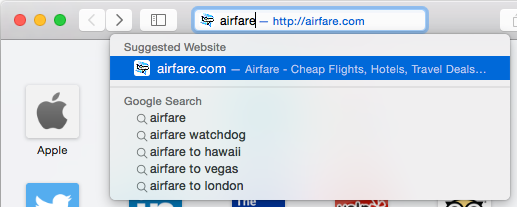 - Click a suggestion to navigate to a website or conduct a search. You can also type a full web address and press Enter to navigate to a website, just like a regular address bar.