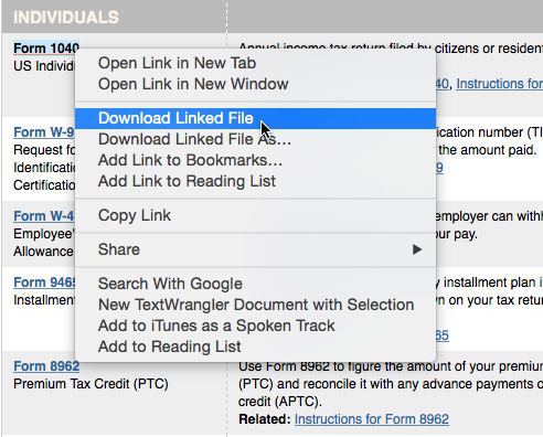 - Right-click the file you want to download, then select Download Linked File.