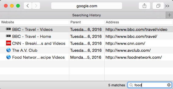 - If you can't remember the exact address or name of a webpage you've visited before, you can try searching the history. Enter a search term or website into the search bar. A list of results will appear automatically.