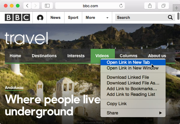 - Right-click the link you want to open, then select Open Link in New Tab from the drop-down menu.