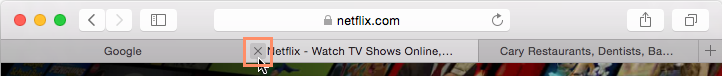 - To close a tab, hover the mouse over any tab and click the Close tab button that appears. You can also press Command+W on your keyboard to close the current tab.