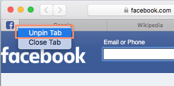 - To unpin a tab, right-click it, then select Unpin Tab from the drop-down menu.