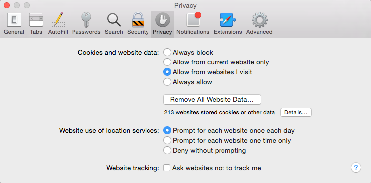 Safari allows you to control some of the information you share online, which you can modify in your privacy settings. We recommend not changing Safari's default selections, as they allow for the best balance of privacy and security while browsing. However, you can modify them if you want.