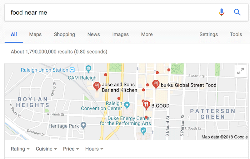 Including the phrase near me in your searches can provide all sorts of information. Just type something like food near me, coffee near me, or gas near me, and Google will look for nearby examples. Even a phrase like cool places near me delivers unique results, so don’t hesitate to try new ideas.