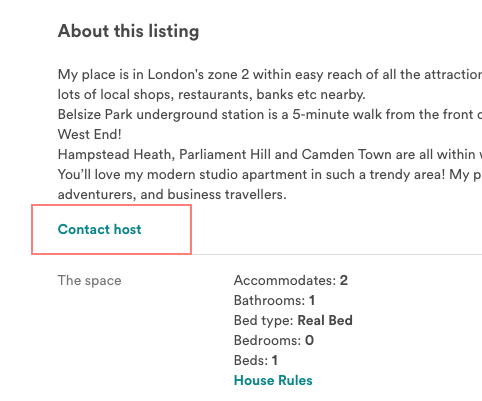 Always review the entire summary of the home before you book to make sure it will meet your needs. If you have questions, contact the host by clicking Contact host in the About this listing or Your host sections.