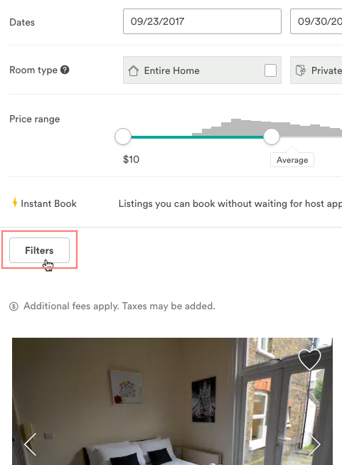 At first, Airbnb gives you a random sampling of different homes around your destination, so let’s focus by applying search filters.
