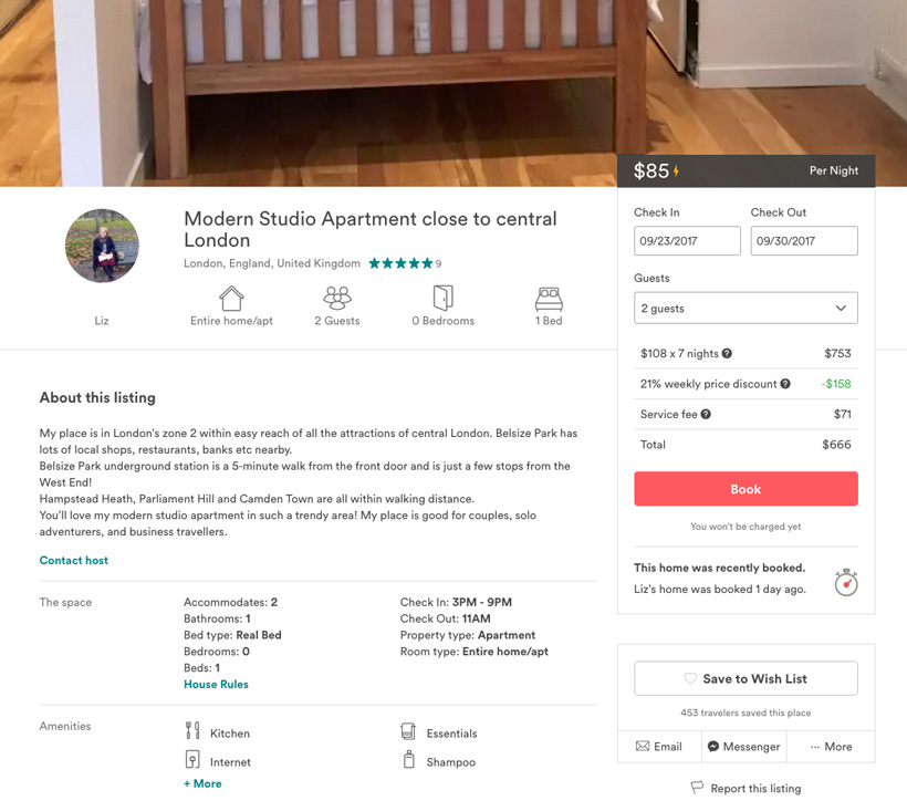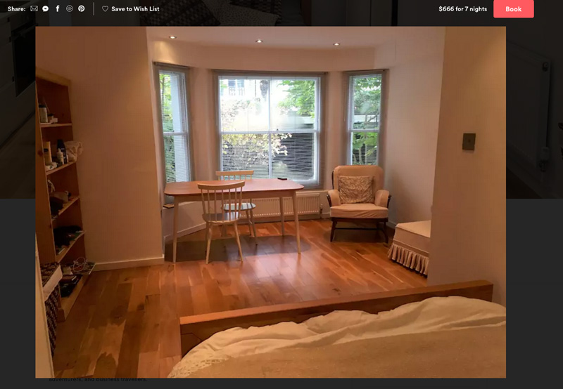 Once you click an interesting home, you’ll find a summary of its offerings, including a detailed description of the space, amenities, and pricing.