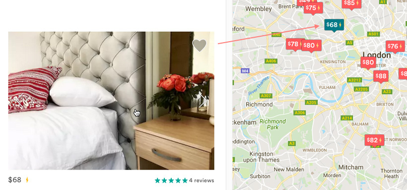 When you hover your cursor over one of the pictures, that property’s location will be highlighted on the map so you can get an idea of where it sits in the greater London area.
