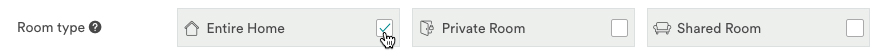 Room type: Some hosts offer an entire home, while others only offer a room. Click an option to only see properties of that type.