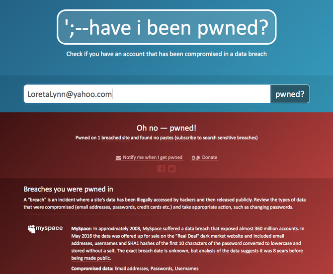 When a data breach does occur, many companies or websites will alert their customers and users. However, you may end up hearing about these breaches from other sources. Worse, you may not hear about it at all. You can use a website like have i been pwned? to determine if you were involved in a breach, and if so, what information was stolen.