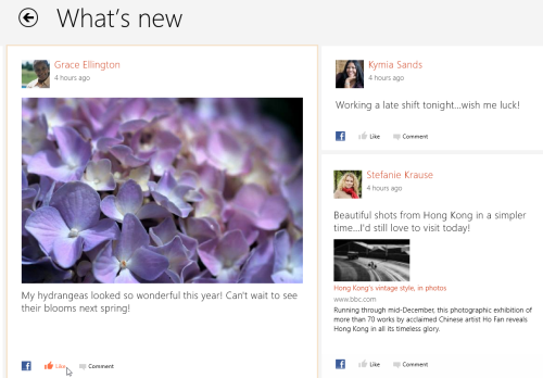 Unpinning a contact from the Start screenThe social page makes it easy to see a quick summary of the latest information from your connected social networks. From here, you can edit your profile picture, post status updates, view your notifications, like and comment on posts, and more.