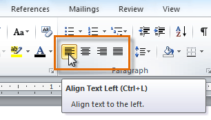 - Select one of the four alignment options from the Paragraph group on the Home tab.