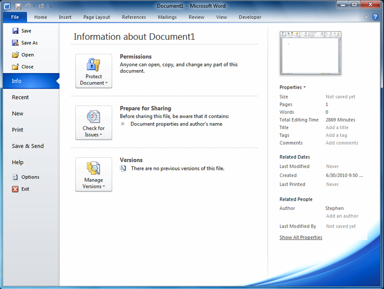 Word 2010 is a bit different from earlier versions, so even if you've used Word before you should take some time to familiarize yourself with the interface. The toolbars are similar to those in Word 2007, and they include the Ribbon and the Quick Access toolbar. Unlike Word 2007, commands such as Open and Print are housed in Backstage view, which replaces the Microsoft Office button.