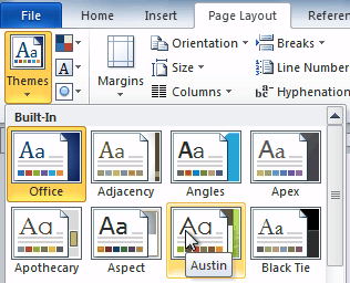 All documents in Word 2010 use a theme. You've already been using a theme, even if you didn't know it: the default Office theme. Every theme, including the Office theme, has its own theme elements: