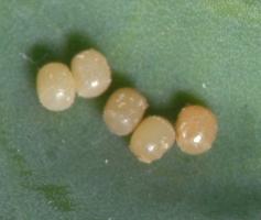 Eggs of the bagrada bug (much enlarged)