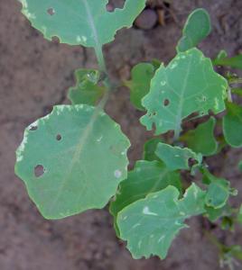 Damage caused by the bagrada bug on cabbage