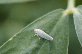 They are small insects (1-3 mm long), green in colour with slender tapered bodies. Leafhoppers are very mobile. The adults hop away when disturbed. Nymphs resemble adults, but have no wings, and run sideways when disturbed. The eggs are inserted in the leaf tissue on the underside of leaflets. They feed mainly on the underside of eggplant leaves, causing small yellow patches on leaves. Infested leaves curl upwards along the margin. Under heavy attack, leaves turn yellow and then brown and dry, giving a burned appearance. Fruit setting may be very low. Leafhoppers multiply rapidly during dry spells and can cause extensive damage.