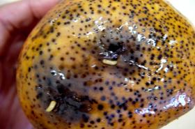 • Remove fruits with dimples and those that ooze clear sap. This method is more laborious than picking the rotten fruits from the ground, but it is also more effective.