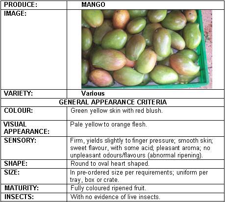 Fresh Quality Specifications for the Market in Kenya