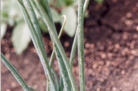 Optimum temperature for infection is from 23.9 to 29.4° C. White onions are very susceptible to the disease. Reduced market value results from marred bulb appearance and bulb shrinkage. It also attacks leeks and shallots.