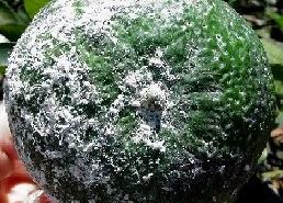 Description: It affects only Mexican lime. It attacks flowers, young leaves, young shoots and fruits. Infected fruitlets abscise, and 'buttons' are produced as in postbloom fruit drop. In severe cases, young leaves become totally blighted and drop, and shoot tips die-back, producing wither tip symptoms. The fruit lesions are often large and deep, and cause fruit distortion. The disease is favoured by warm, wet weather.