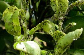 Heavy attack by the citrus aphid (Toxoptera citridus and T. aurantii) © A.A. Seif, icipe |