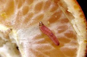 Mining caterpillar of the citrus leafminer (Phyllocnistis citrella) usually attacks young leaves and shoots. © A.A. Seif, icipe |