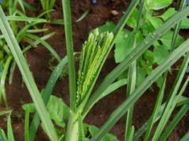 Sorghum shoot fly, (Atherigona soccata), is a particularly nasty pest of sorghum in Asia, Africa, and the Mediterranean area. Females lay single cigar-shaped eggs on the undersides of leaves at the 1- to 7-leaf stage. The eggs hatch after only a day or two of incubation, and the larvae cut the growing point of the leaf, resulting in wilting and drying. These leaves, known as 'deadhearts', are easily plucked. When a "dead heart" is plucked, it releases an obnoxious odor.