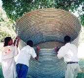 This hemi-spherical tank (see image above) built of burnt bricks reinforced with barbed wire and chicken mesh is for roof catchment of domestic water. ![]() |