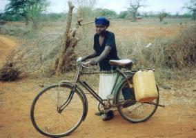 fetching water because bicycles are cheaper and more versatile than donkeys, although a bicycle can only carry a maximum of 3 jerry cans which is 60 kg of water.