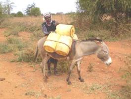 Where water has to be fetched from sources further away than 10 km a donkey has to be purchased. A donkey can carry 4 jerry cans of water for distances up to 30 km during a return trip taking 2 days.