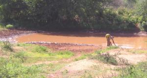 They must also wait at the riverbed until it is their turn to fill their jerry cans with the water that seeps slowly into the waterholes they have scooped out of the sand.