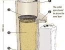If the filter has to be cleaned very often, the water is too silty and should be allowed to stand in a large tank or prefiltered beforehand. For prefiltration, an upward flow filter is useful. In an upward flow filter, the bed of coarse (3 to 4mm) sand is supported on a plate pierced all over with 2mm holes 50mm apart. The advantages of the upward flow filter is that it is easy to clean the sand bed once a day by shutting of the flow and pulling the drain plug.