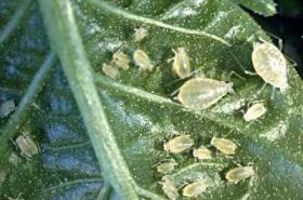 Green peach aphid (Myzus persicae) It is a very detrimental insect to spinach. It can transmit diseases that can wipe out large portions of the crop. Aphids and leafminers cause the most serious damage on the crop (University of Georgia). The aphid is pale yellowish in colour and small. It lives mainly on the underside of leaves and therefore hard to control. | ![]()