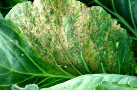 It is a fungus that causes white blister-like pustules on the underside of leaves. They are filled with white spores and the surrounding tissue turns brown and dies. The fungus favours clear, warm, and dry days with cool nights.