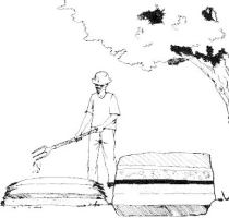 2. Measure a rectangle 120 cm (4 feet) wide and 150 cm (5 feet) or more long. The length depends on how much composting material you have. Do not make the rectangle wider than 120 cm, as you have to be able to work on the compost without stepping on it. In rainy places, it is best to make the compost pile above the ground. In drier areas, use the pit method described later in this section.
