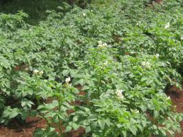 Potato mother plants widely spaced (1.5x0.60m) for production of basic seed