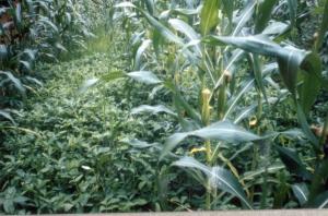 Cropping systems should be designed in such a way that the soil is almost permanently covered with plant canopy. In arable crops, careful timing of sowing and planting can help to avoid uncovered soil being washed away during the rainy season. After the main crop is harvested, a green manure crop may be sown. On slopes, crops should be grown in contour lines across the slopes (along the contour lines) rather than vertically. This can contribute enormously to reduce the speed of surface water.