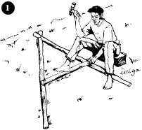 1. Use the poles and nails to make a frame in the shape of an "A" (Picture 1).
