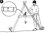 4. Stand the A-frame upright on reasonably level ground. Mark on the ground where the two legs stand.