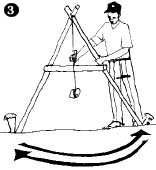 8. The two marks on the crossbar should be fairly close together. Halfway between them shows where the string would cross if the A-frame were standing on exactly level ground. Make a heavy pencil mark or notch the bar with a knife at this point (Picture 3).