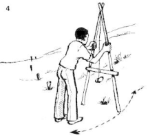 1. Choose a place on the slope to begin. Stand the A-frame up and mark where the first leg stands with a peg or large stone.