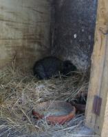 At the same time their ear temperature will increase, it functions, like a car radiator, for cooling the blood. The ideal temperature is from 10°C - 26°C. They are able to survive in temperatures as low as 0°C and as high as 33°C but their efficiency will be compromised at these temperatures. Heat regulation of newborn rabbits is, however, different.They are born blind, naked and helpless; and it is interesting to note that they are born with teeth. To keep warm they huddle together in a nest made by the mother. This will be lined with fur from her chest and, after birth, she will pull out more hair and cover the nest.To limit heat loss the kits huddle together. If the temperature rises, they will move apart. A sudden drop in temperature can disable their temperature control before they can huddle together again, and a kit can die of cold 10 cm away from the group. The breeder must be watchful for such instances.