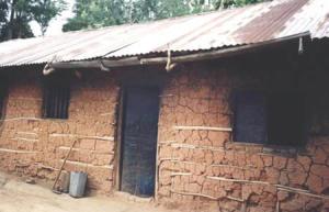 They prevent rainwater from over-shooting gutters. They are made of strips of iron sheets bent at an angle and nailed onto the roof. Gutters are suspended with from the splash-guard using galvanized wires.