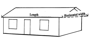| A sketch showing the length with the horizontal width of a double pitched roof |