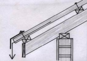 | A splash-guard, a strip of galvanized iron sheet, nailed onto the roof. |