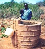 The cost of lining well shafts can be reduced by placing a large perforated PVC pipe in the centre of the excavation and filling stones and gravel all around it up to the ground level.