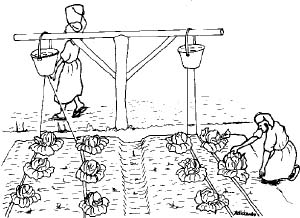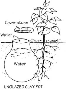 ii Clay pot irrigation, whereby water is poured into clay pots buried up to their necks in the ground
