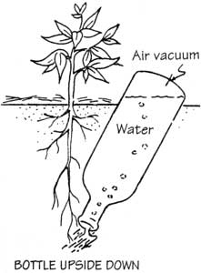 iii Bottle irrigation, by which bottles filled with water are buried upside down near a plant or tree